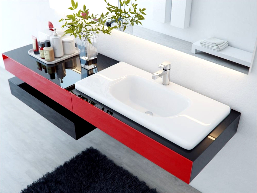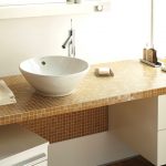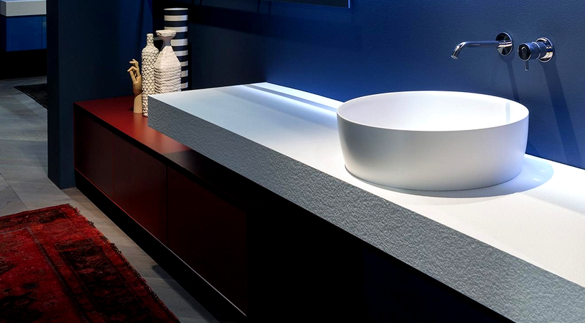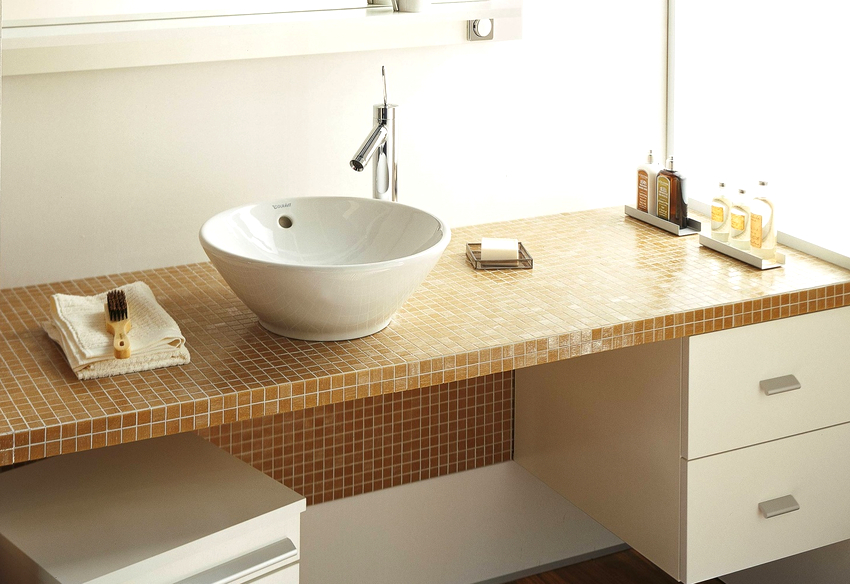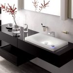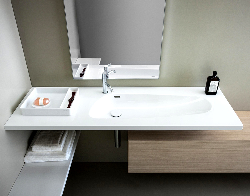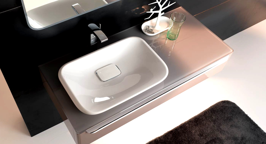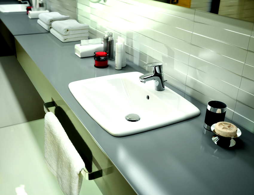 ในกรณีเหล่านี้จะใช้อ่างล้างหน้าแบบฝังเคาน์เตอร์ และที่นี่ไม่มีข้อ จำกัด ในการสร้างสรรค์จินตนาการและจินตนาการ: คุณสามารถซื้ออ่างล้างหน้าในรูปแบบดั้งเดิมและวางไว้ตรงกลางหรือวางชดเชยด้านใดด้านหนึ่ง