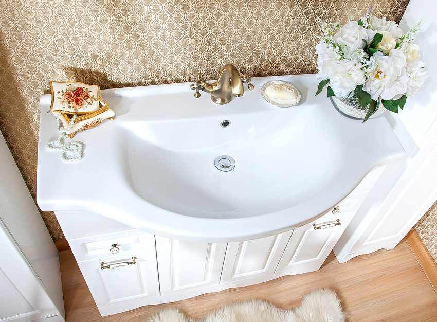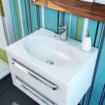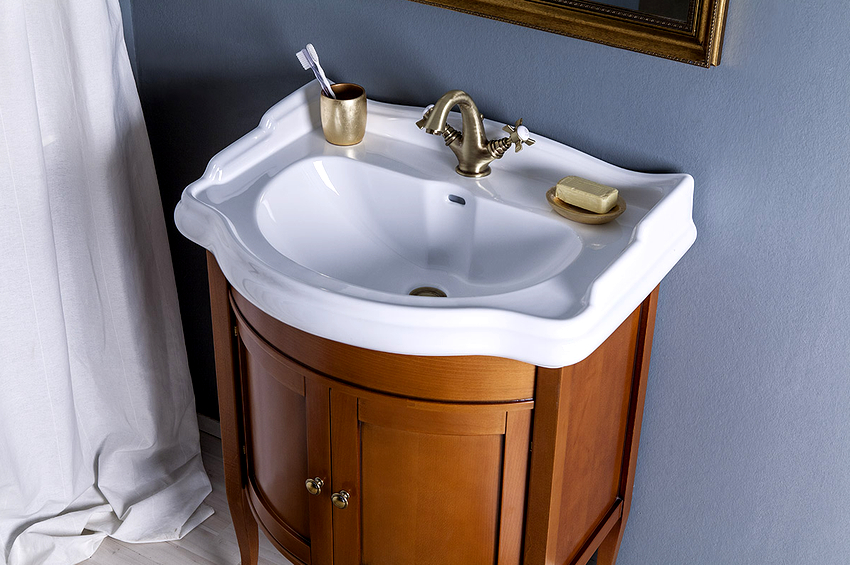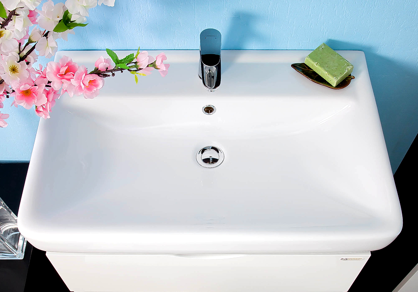 2. Aquaton MILAN 80 ผลิตภัณฑ์มีความโดดเด่นด้วยดีไซน์ดั้งเดิมโดดเด่นด้วยเส้นเรียบก๊อกน้ำด้านข้างและรูสำหรับป้องกันน้ำล้น ทำจากหินอ่อนที่สร้างขึ้นใหม่ เหมาะสำหรับติดตั้งบนเคาน์เตอร์