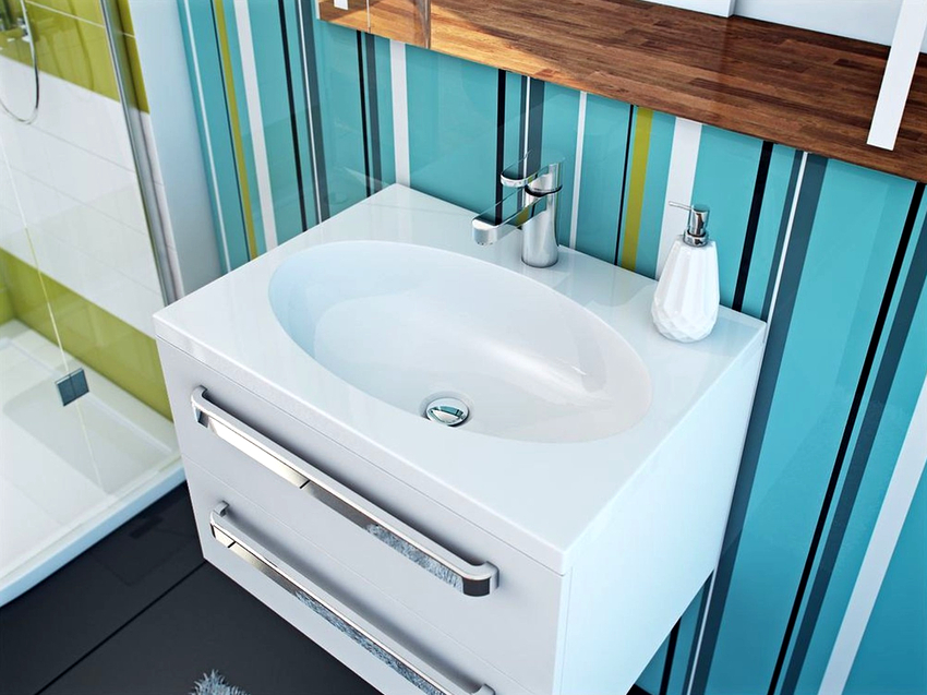 อ่างล้างหน้าเหนืออ่างอาบน้ำควรได้รับความสนใจเป็นพิเศษ ผลิตภัณฑ์ดังกล่าวมักแขวนอยู่โดยมีรูปร่างเป็นไปตามโครงร่างของอ่างอาบน้ำในบริเวณที่แขวนอ่างล้างหน้า ด้วยวิธีการติดตั้งนี้สิ่งสำคัญคือต้องจัดวางท่อระบายน้ำอย่างเหมาะสม: ซ่อนไว้ในผนังให้มากที่สุดหรือซื้อกาลักน้ำครึ่งโลหะที่เรียบร้อย หลังค่อนข้างเป็นที่ยอมรับเมื่อใช้ท่อประปาในการล้าง