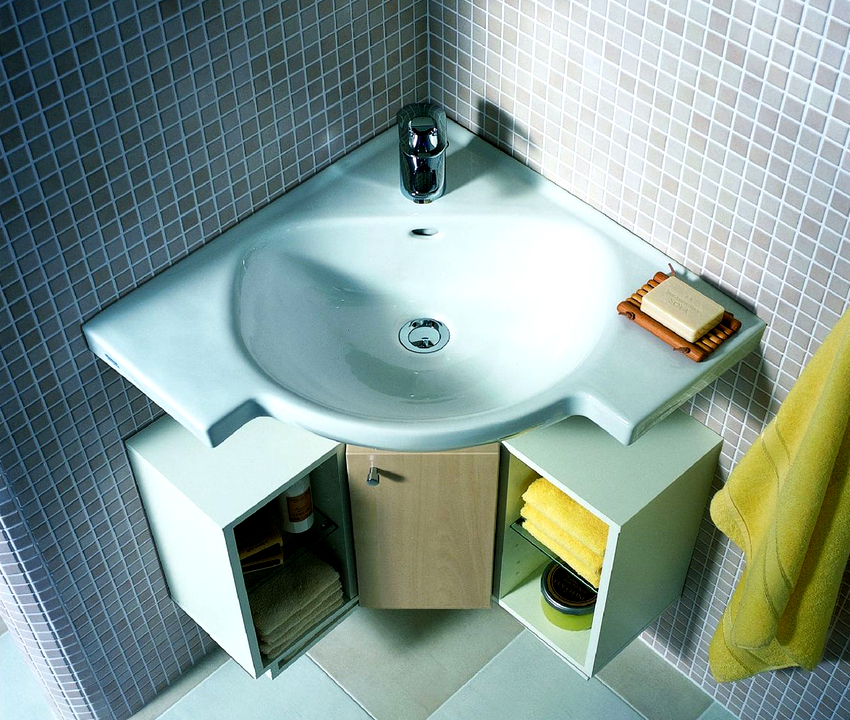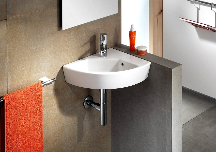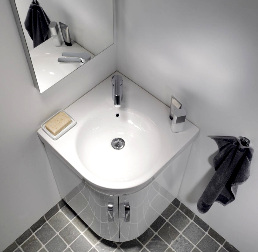 อ่างล้างมือเข้ามุมในห้องน้ำสามารถติดตั้งได้ทุกรูปแบบที่มีอยู่และมีหลากหลายรูปทรง ในระหว่างการจัดวางสิ่งสำคัญคือต้องแน่ใจว่าสามารถเข้าถึงได้ฟรีและอยู่ในตำแหน่งที่สบาย ความรู้สึกของพื้นที่ จำกัด ช่วยลดระดับความสะดวกสบายลงอย่างมาก
