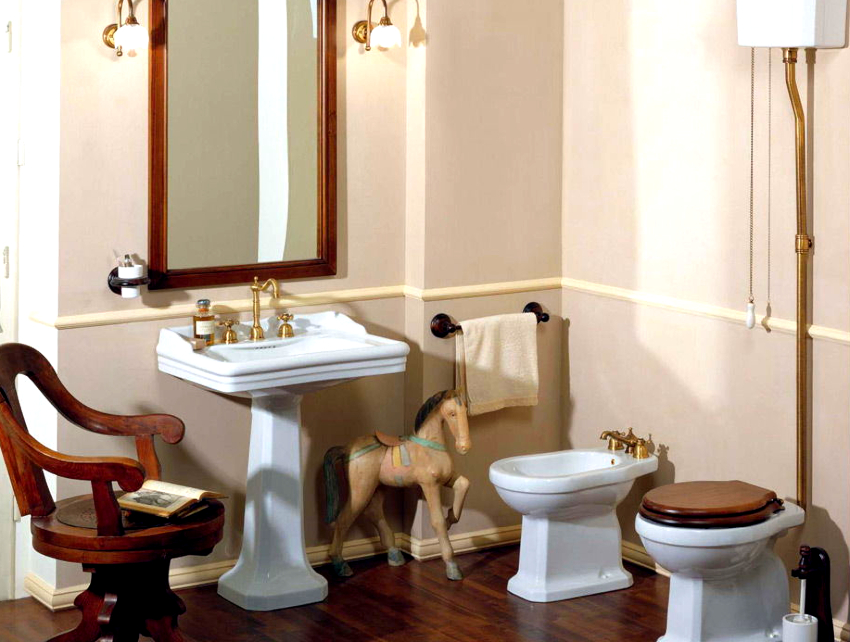 วัตถุประสงค์หลักของห้องน้ำคือสุขภัณฑ์ หนึ่งในขั้นตอนสุขอนามัยนั่นคือการซักต้องใช้อ่างล้างจานพิเศษ เนื่องจากห้องมีขนาดเล็กจึงปฏิเสธระบบประปาประเภทนี้และใช้ก๊อกน้ำเหนือห้องน้ำ ควรสังเกตว่าการตัดสินใจดังกล่าวผิดพลาดและมีข้อโต้แย้งมากมายที่พิสูจน์เรื่องนี้