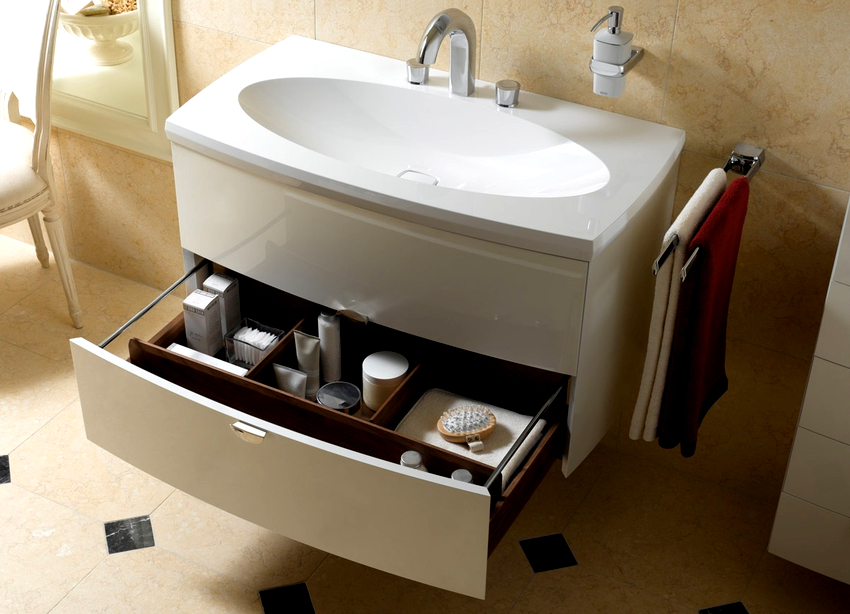อ่างล้างหน้าพร้อมโต๊ะเครื่องแป้งในห้องน้ำ: องค์ประกอบที่สะดวกและใช้งานได้ของห้อง