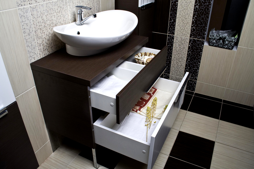 - หากห้องมีขนาดเล็กมากควรซื้อแบบแขวนขนาดเล็กและปล่อยให้มีพื้นที่ว่างใต้อ่างล้างจาน ควรวางตู้และชั้นวางไว้เหนืออ่างล้างจาน