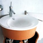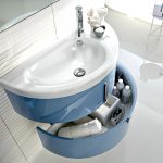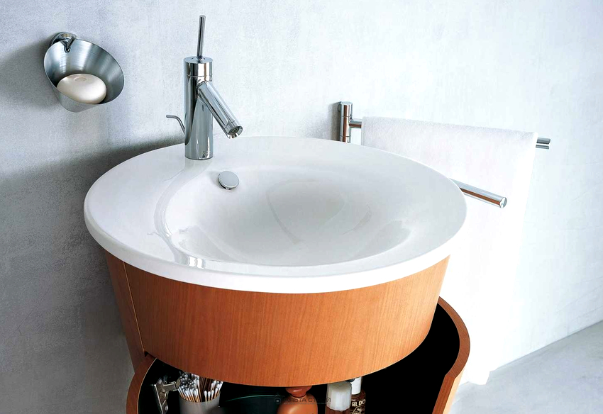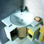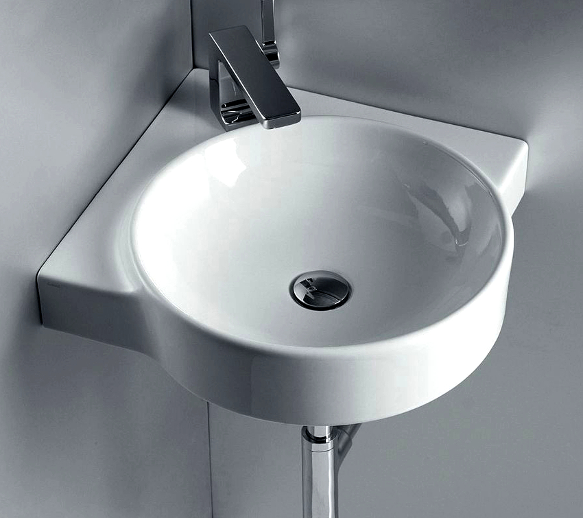 นอกจากนี้เราควรเน้นอ่างล้างหน้าซึ่งติดตั้งอยู่ที่มุมห้อง ผลิตภัณฑ์ดังกล่าวยังมีรูปร่างที่เหมาะสม เป็นได้ทั้งแบบตั้งพื้นและแบบแขวน หากการออกแบบมีเคาน์เตอร์แสดงว่าเธอเป็นคนที่ทำมุมอ่างล้างจานอาจเป็นทรงกลมวงรีหรือสี่เหลี่ยม