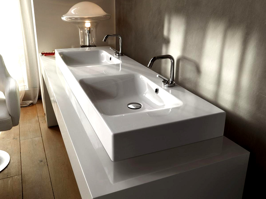 คำแนะนำที่เป็นประโยชน์! หากบ้าน (หรืออพาร์ตเมนต์) มีผู้อยู่อาศัยมากกว่า 5 คนควรติดตั้งอ่างล้างหน้าสองอ่าง มิฉะนั้นจะไม่สามารถหลีกเลี่ยงปัญหาในช่วงเวลาเร่งด่วนได้