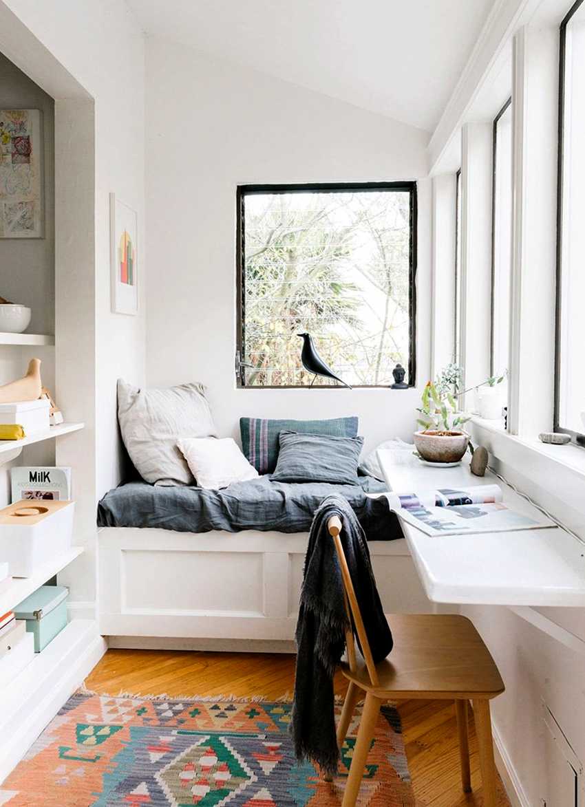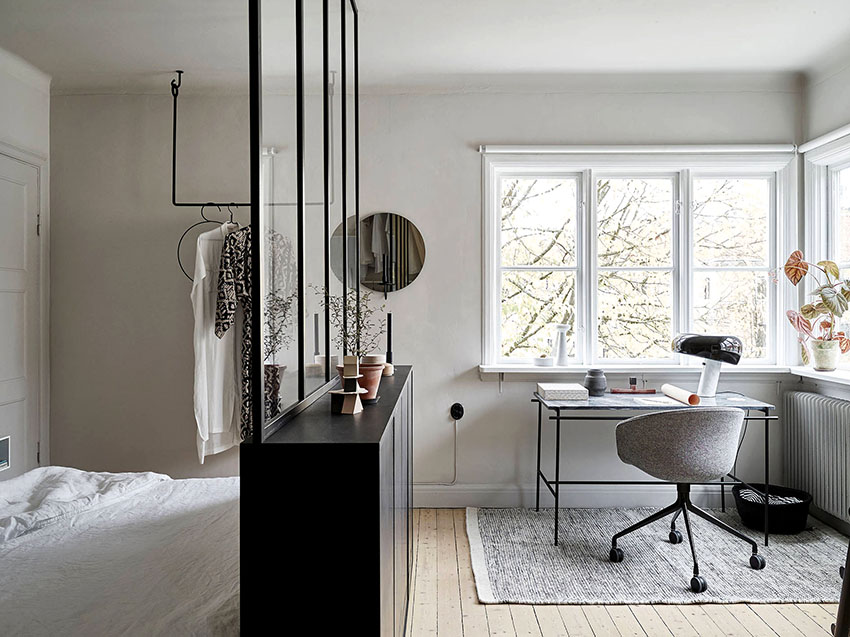 Ang isang lugar ng trabaho sa kwarto ay isang maginhawa at praktikal na pagpipilian para sa maliliit na apartment
