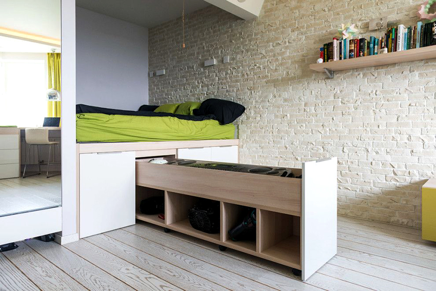 Sa mga kondisyon ng mga apartment sa lunsod, ang mga may-ari ay madalas na pagsamahin ang mga nasasakupang lugar, lumilikha ng isang solong puwang na may mga lugar na nagagamit. Kadalasan, ang silid-tulugan ay pinagsama sa isang opisina, nursery o sala. Sa ganitong mga kaso, hindi nasasaktan ang pagbili ng mga kasangkapan sa bahay na may isang pagpapaandar na pagbabago, halimbawa, isang kama na itinatayo sa plataporma o nagtatago sa isang kubeta. Sa gabi, ang lugar na natutulog ay maaaring magamit para sa inilaan nitong layunin, at sa araw ay maaari itong maitago, na nagpapalaya ng karagdagang puwang sa silid.