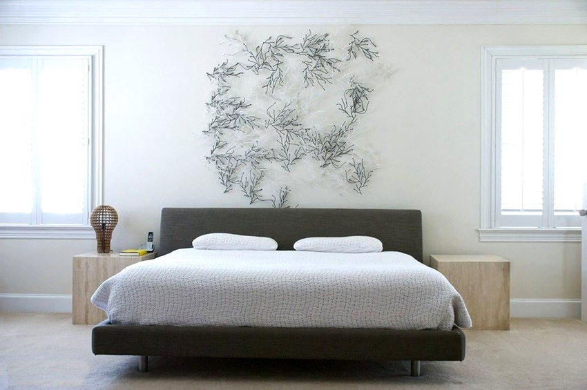 Upang makakuha ng isang ergonomic at maalalahanin na panloob na disenyo, wardrobes built-in na uri. Ang mga nasabing disenyo ay ginawa upang tumugma sa dekorasyon ng silid. Kung ang isang kama lamang ay umaangkop sa isang silid, pagkatapos ay maaari mong pagandahin ang loob nito ng isang magandang headboard. Kadalasan, ang mga taga-disenyo ay gumagamit ng dekorasyon sa dingding upang lumikha ng coziness.
