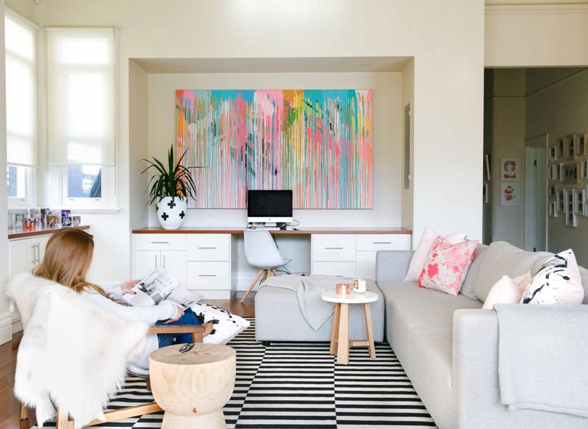 Ang mga maliliwanag na sofa cushion ay hindi lamang nag-iiba-iba ng mga color palette ng interior, ngunit makakatulong din na kumportable na umupo sa lugar ng libangan