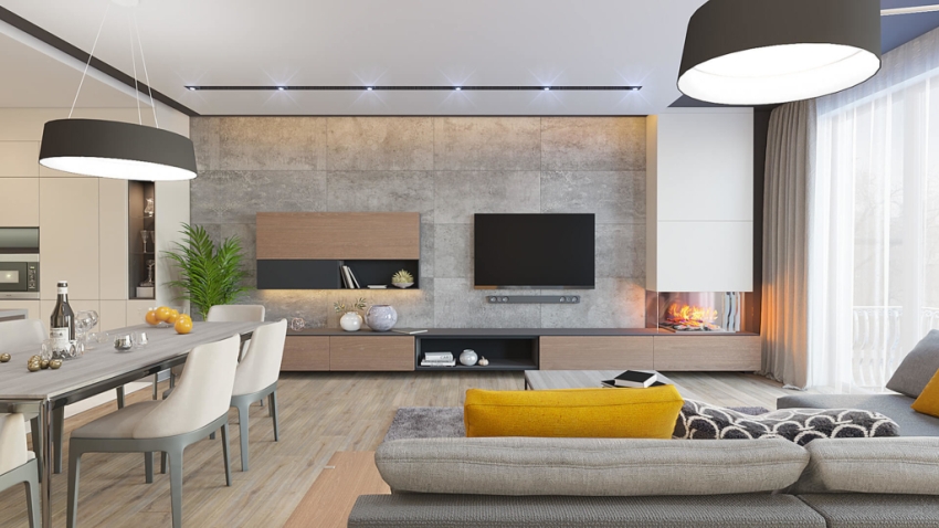 Sala sa modernong istilo: mga pagpipilian para sa pagtatapos ng mga ibabaw ng dingding