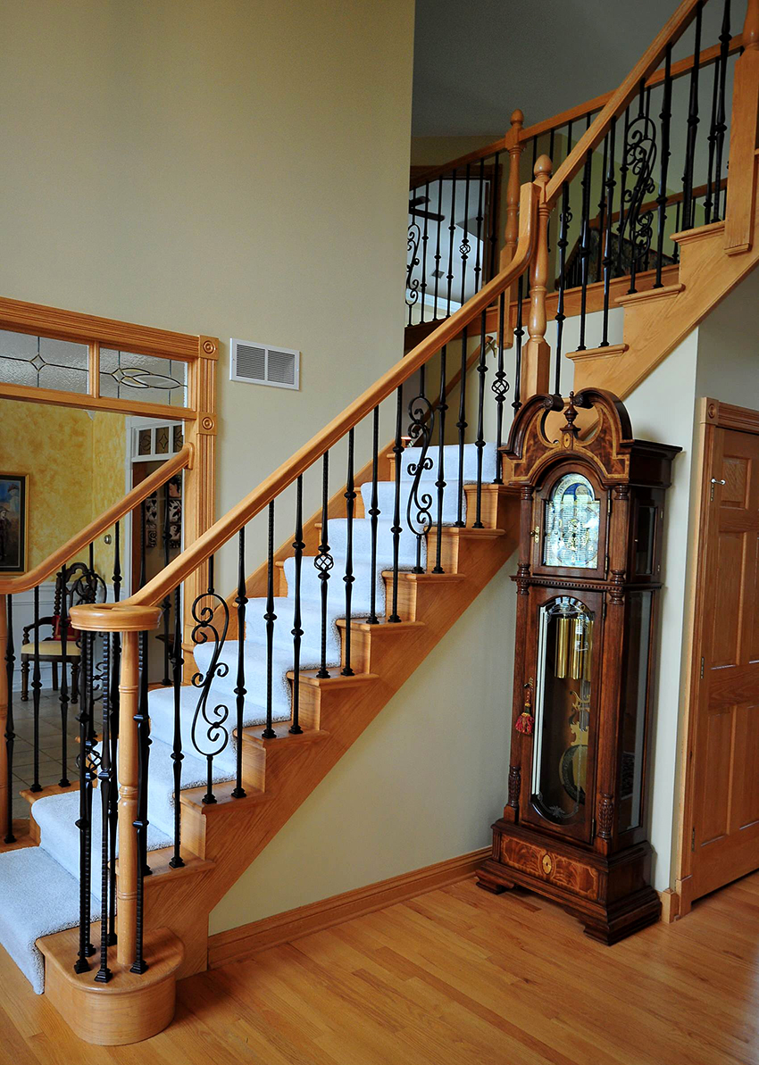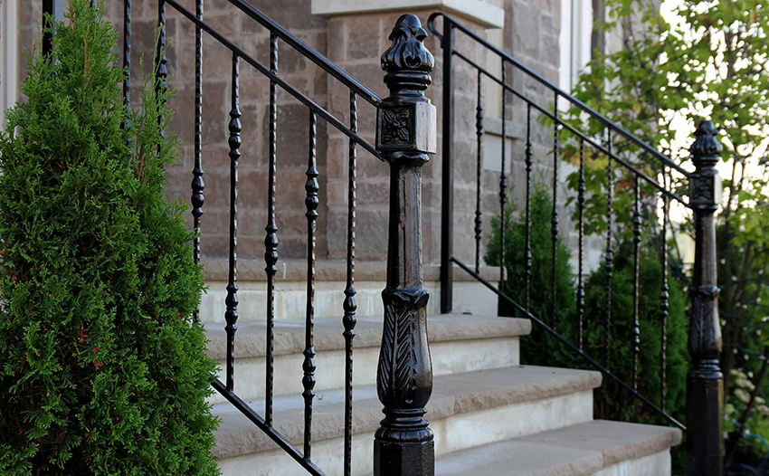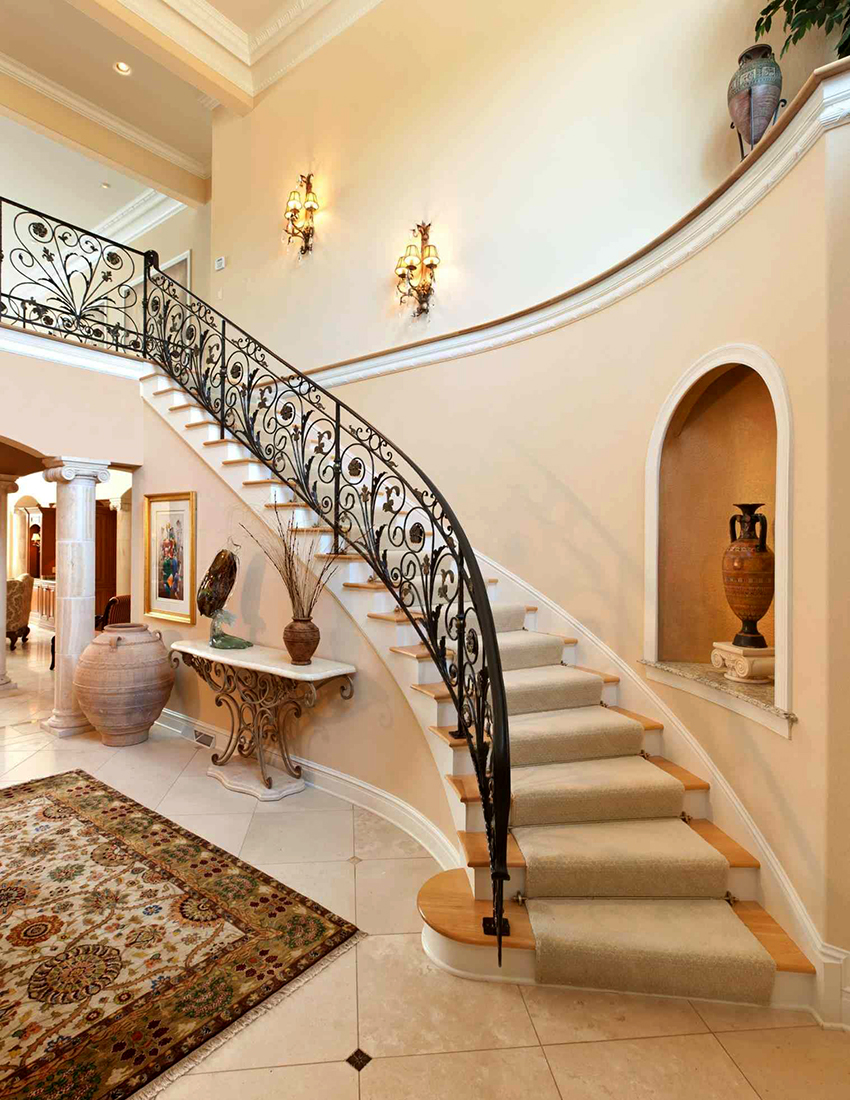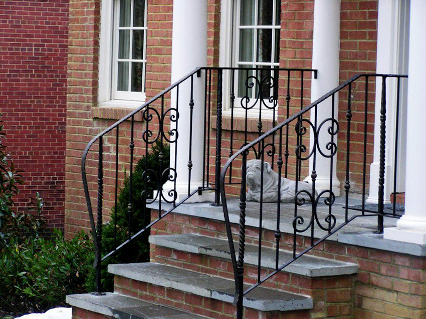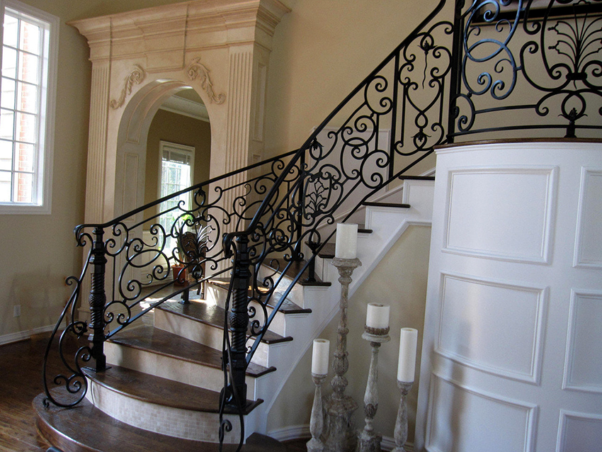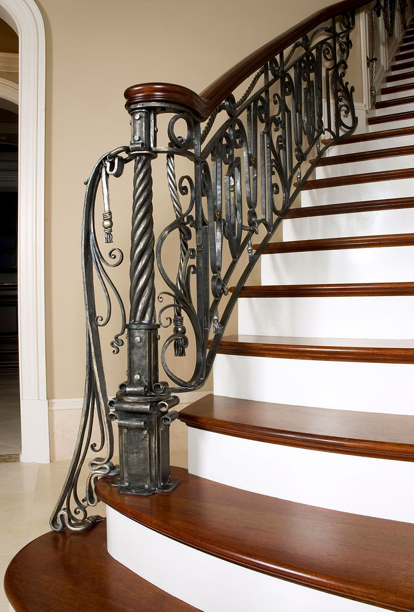 Mga pagpipilian sa disenyo para sa isang wraced iron stair railings sa isang pribadong bahay