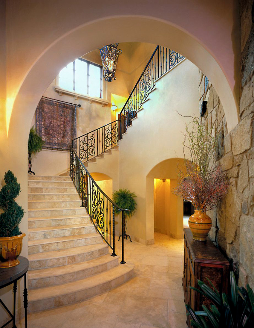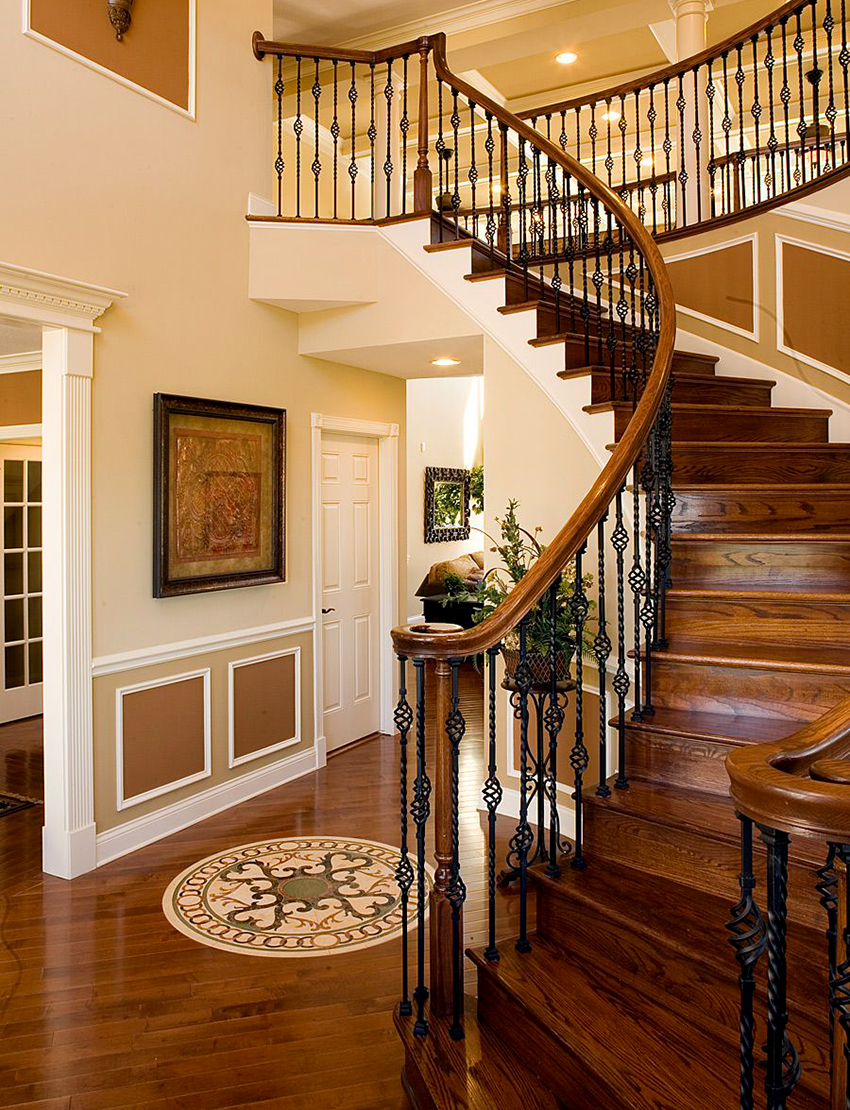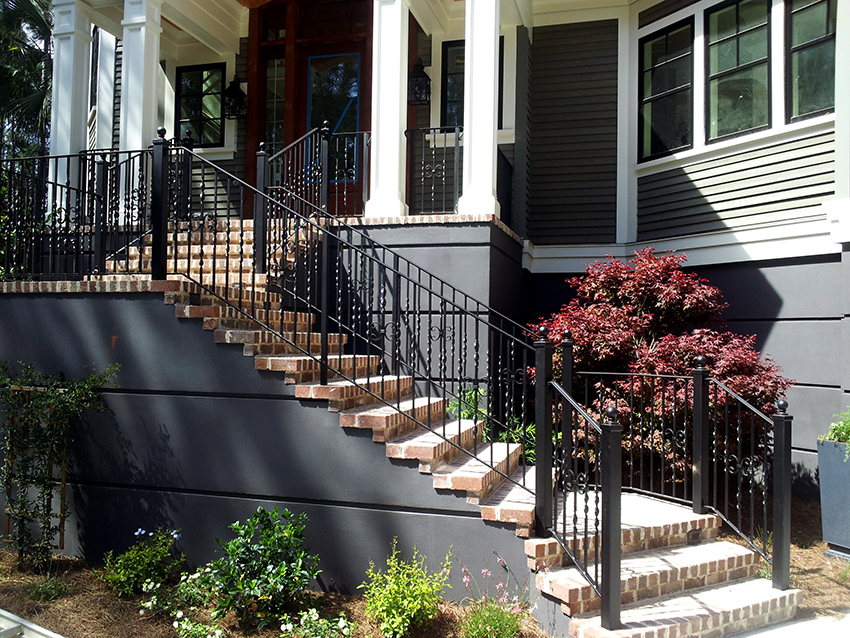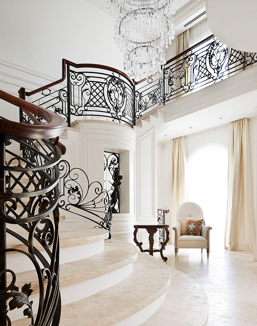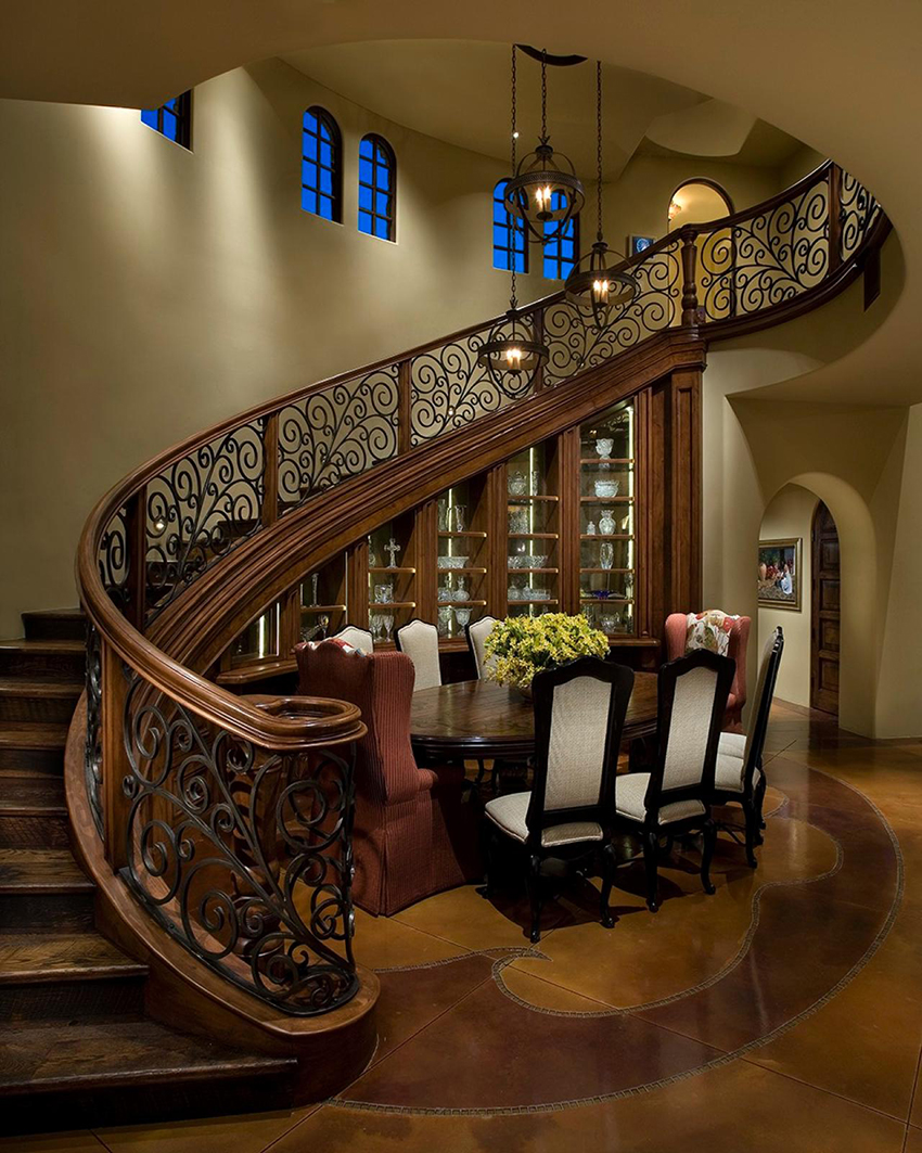 Mga pagpipilian sa disenyo para sa isang wraced iron stair railings sa isang pribadong bahay