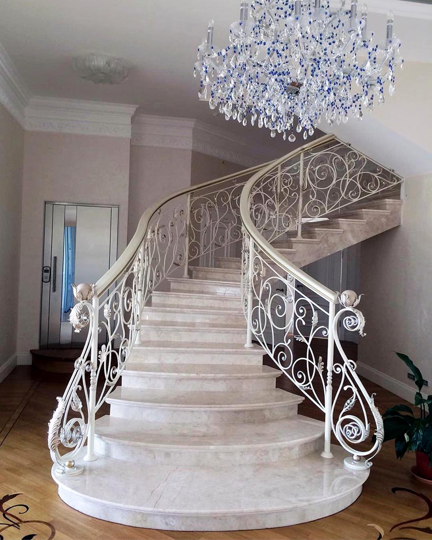 Ang mga huwad na elemento ay ginamit bilang dekorasyon para sa mga disenyo nang daang siglo. Mas pinipili nila ang laban sa background ng iba pang mga panloob na elemento, dahil ang mga ito ay orihinal at napakaganda. Ang mga hagdan na pinalamutian ng mga metal na burloloy ay napakapopular. Ang mga nasabing disenyo ay madalas na ginagamit sa loob ng mga pribadong bahay at cottages ng bansa.