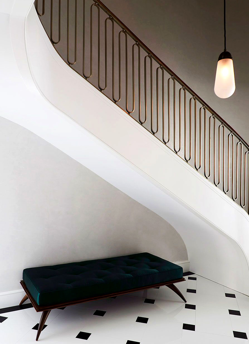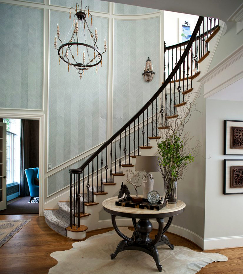 Ang mga istrukturang metal ay ginagamit hindi lamang sa klasikong istilo - maaari silang mai-install sa mga modernong silid. Kaya, ang mga naturang bakod ay isang mahusay na solusyon upang palamutihan ang anumang panloob, hindi alintana ang mga tampok nito.