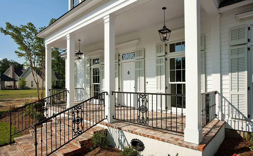 Tandaan! Ang isang gusali ng tirahan na ginawa sa isang klasikong istilo ay maaaring nilagyan ng isang beranda, beranda o terasa. Ang isang bakod para sa gayong disenyo ay dapat ding mapili sa isang katulad na disenyo ng pangkakanyahan.