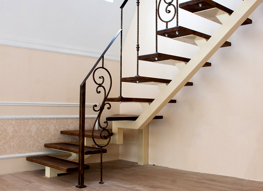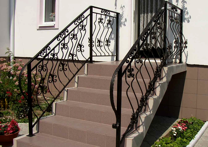 Ang mga hagdan na may mga bakal na rehas na bakal ay maaaring mai-install kapwa sa loob ng bahay at sa labas