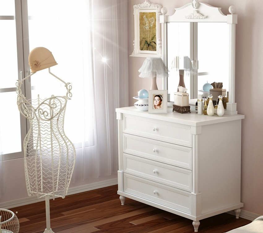 Kapaki-pakinabang na payo!Sapat na upang ilagay ang isang salamin sa ibabaw ng dibdib ng mga drawer at ito ay magiging isang komportableng mesa sa pagbibihis sa kwarto.