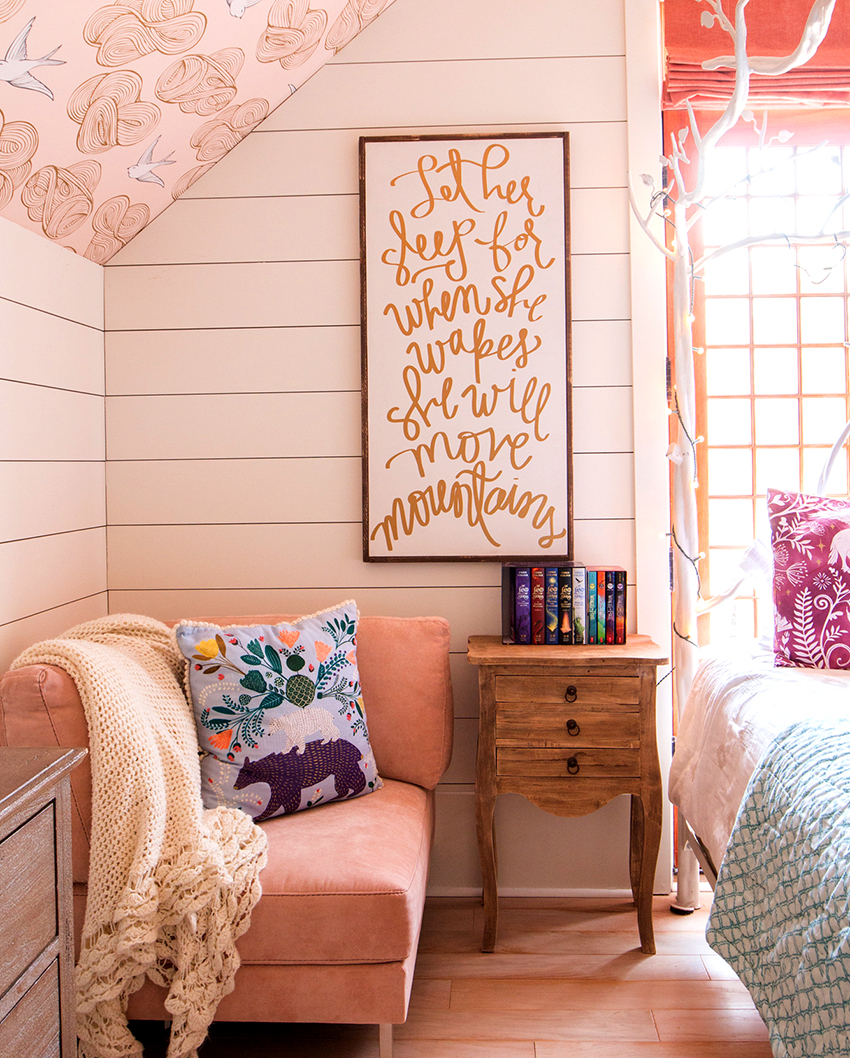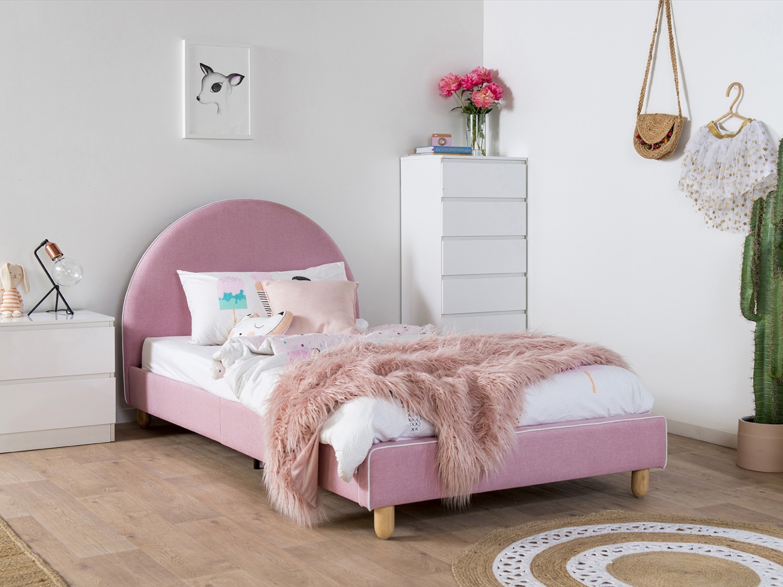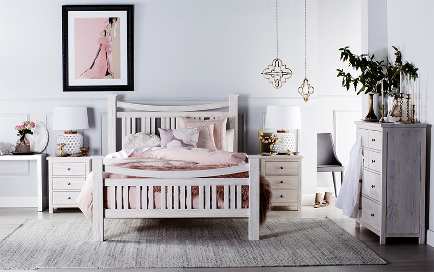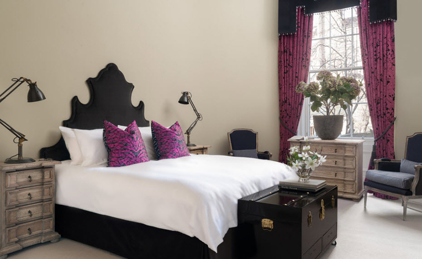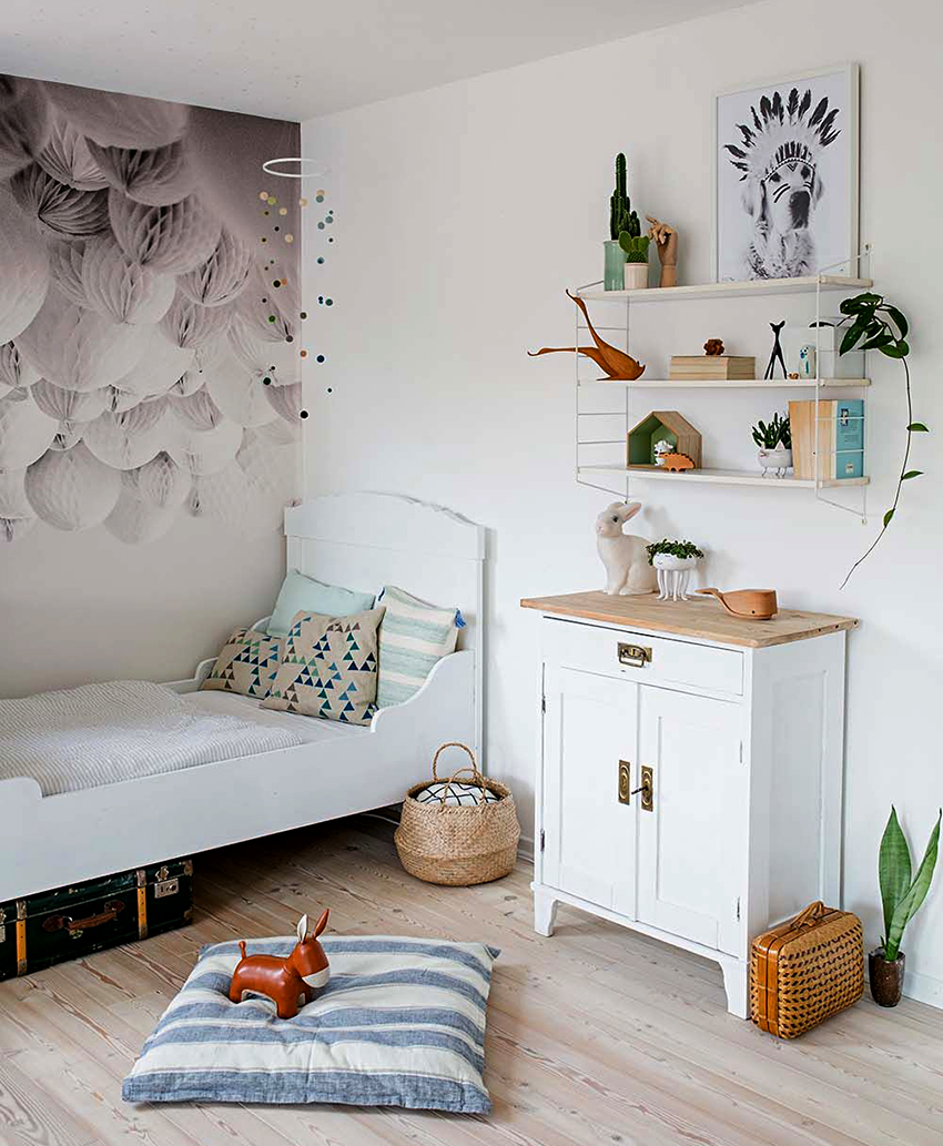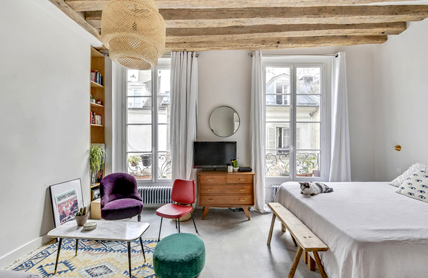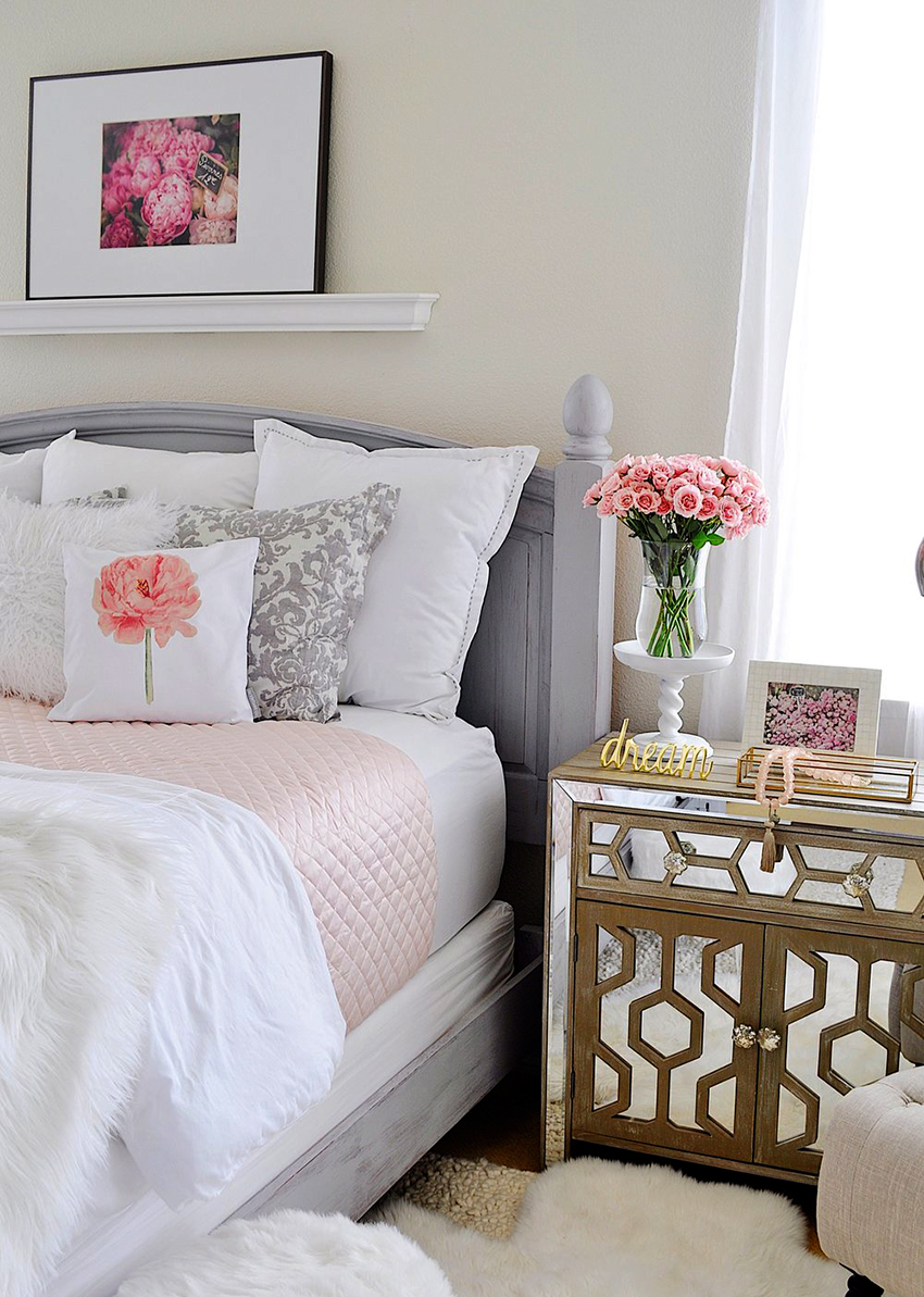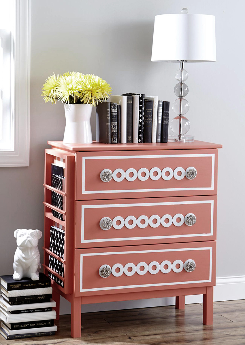 Ang isang maliit na dibdib ng drawer na malapit sa kama ay makakatulong na mapanatili ang lahat ng kailangan mo