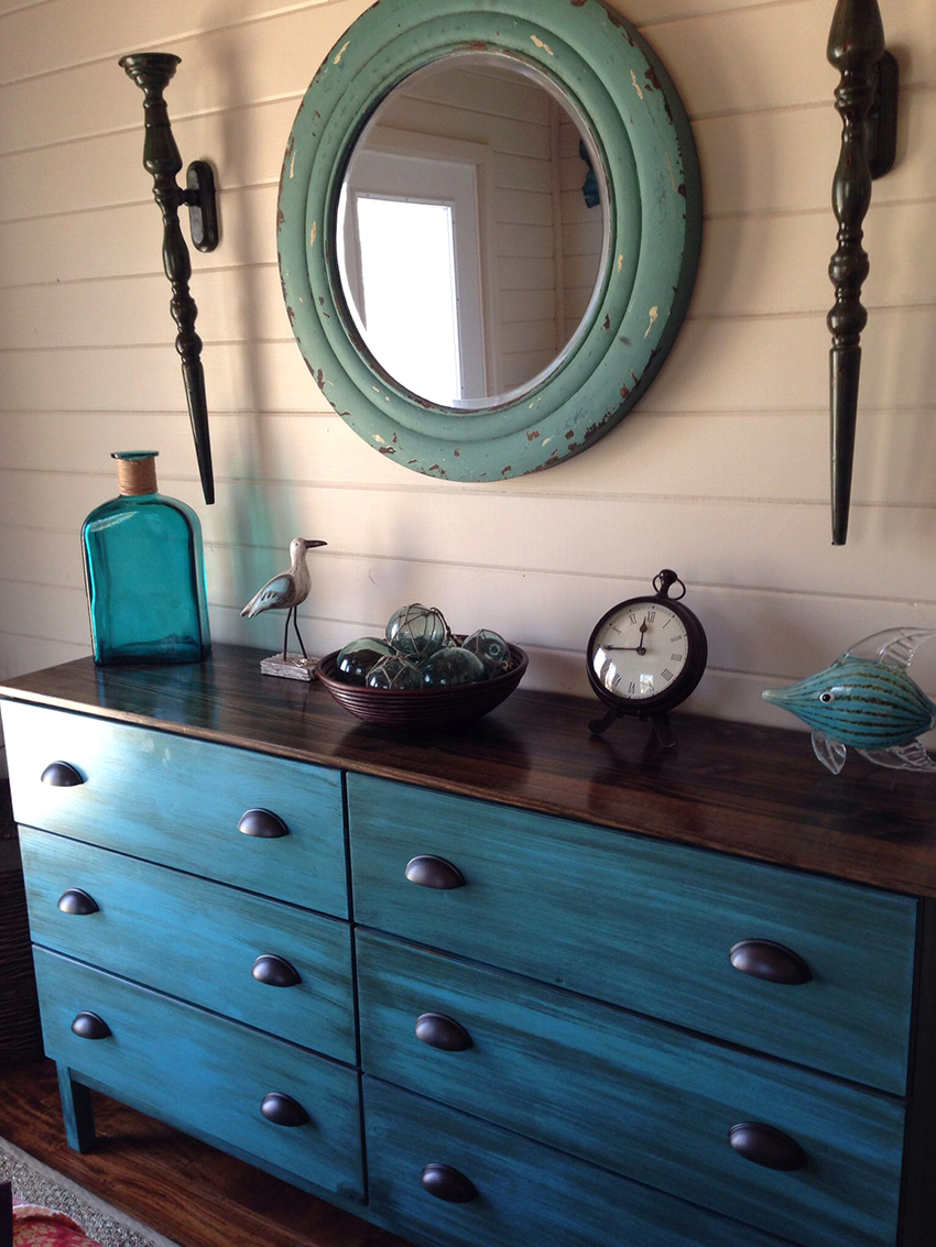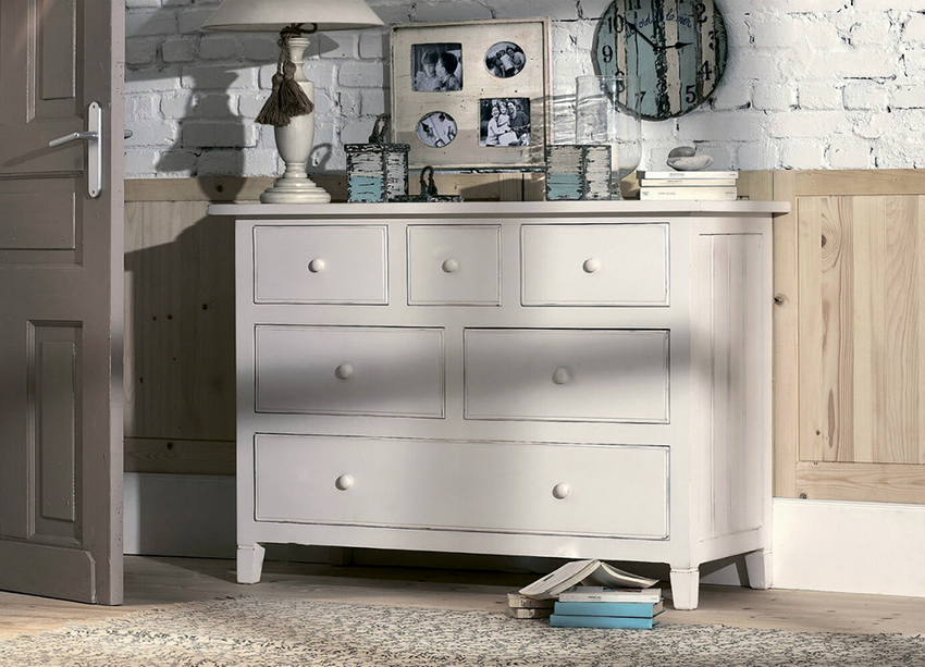 Ang Provence style na dibdib ng mga drawer ay nagbibigay para sa pagpipinta sa mga kulay na pastel, pati na rin ang dekorasyon gamit ang diskarteng decoupage. Ang mga kasangkapan sa estilo ng loft ay pinangungunahan ng magaspang na materyales, sa partikular na hilaw na kahoy o metal.
