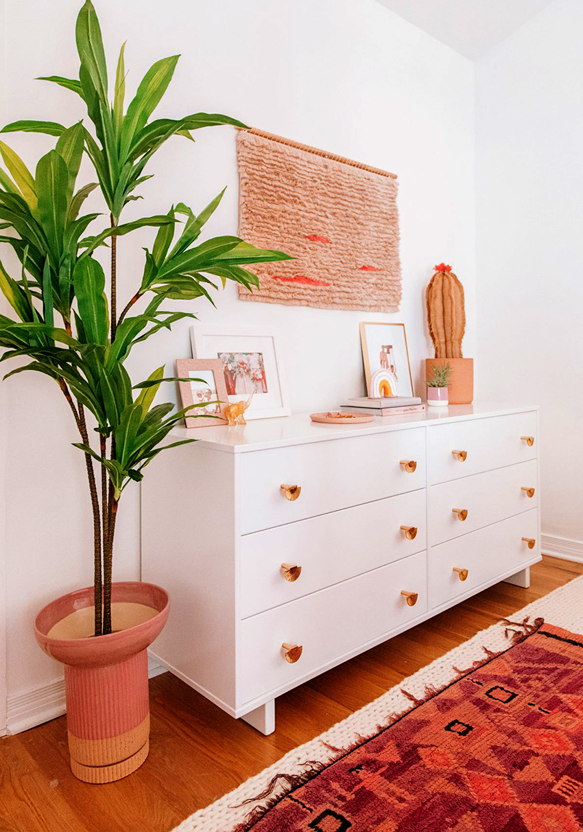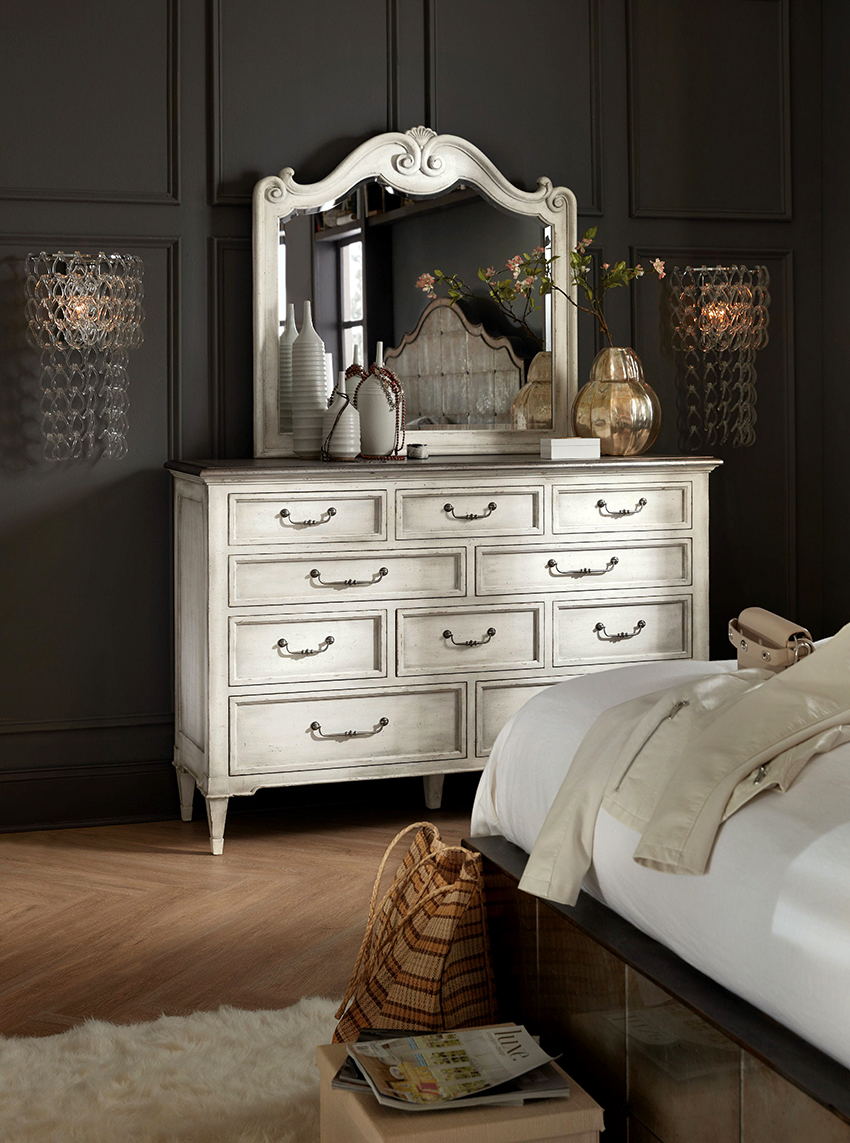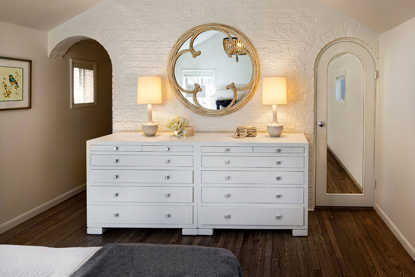 Kapaki-pakinabang na payo!Ang isang malaking dresser sa kwarto ay aakit ang pangunahing pansin at maaaring maging isang mahusay na tuldik sa pangkalahatang grupo.