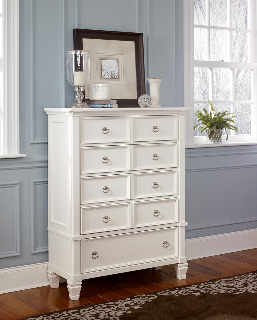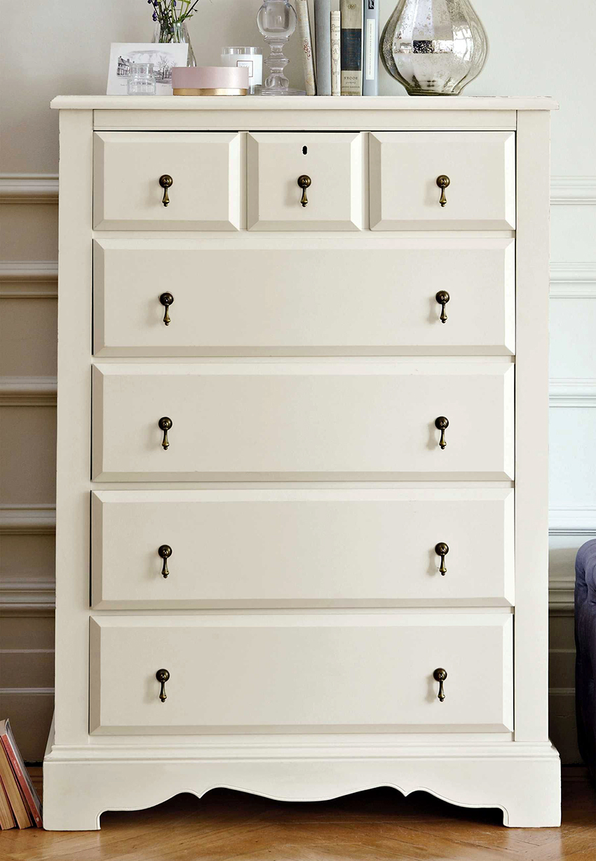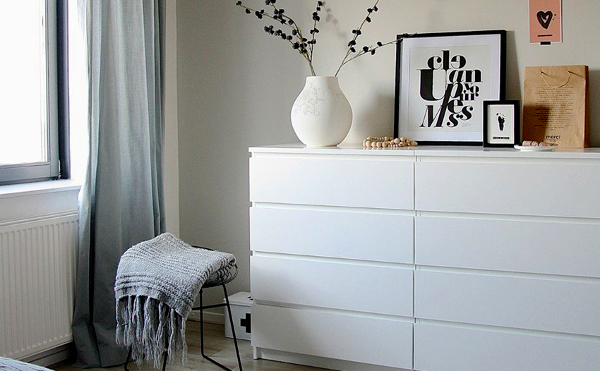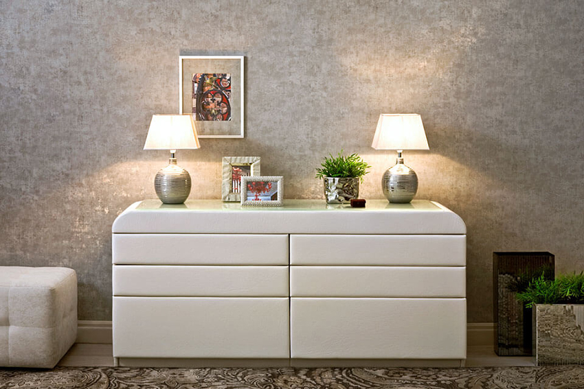 Ang pinakatanyag na pagpipilian ay isang puting linen dresser sa kwarto.
