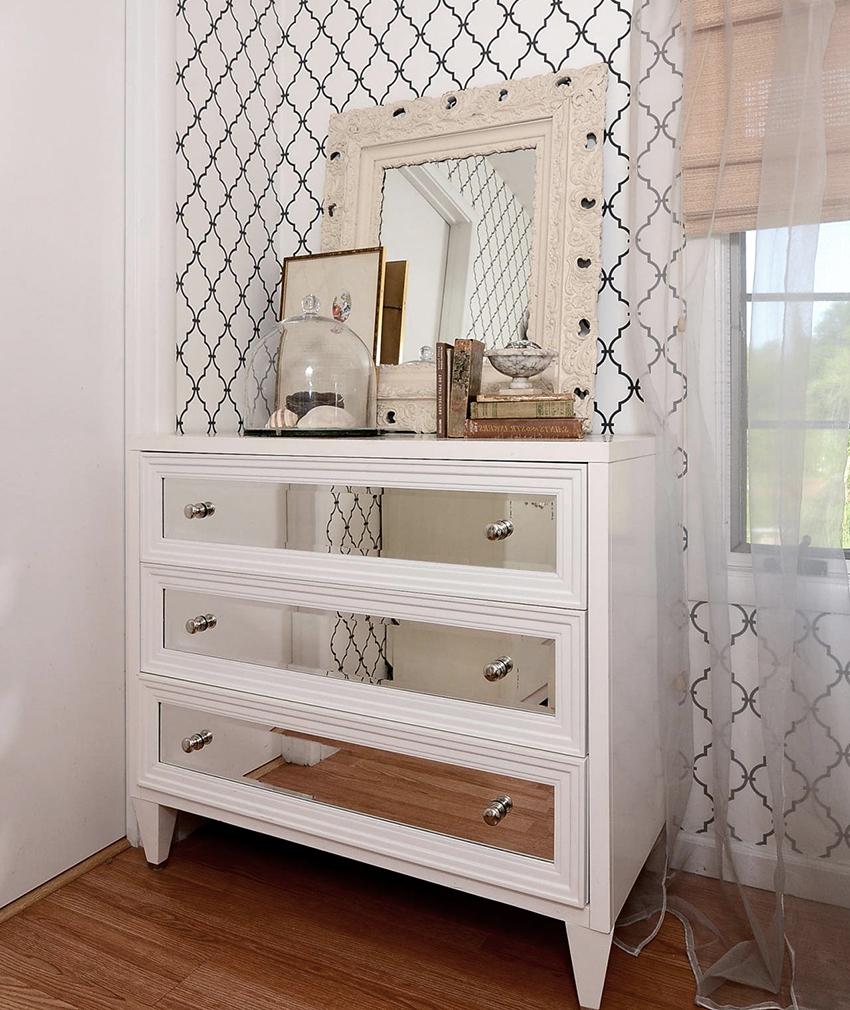 Dibdib ng mga drawer na may salamin sa kwarto: isang kahalili sa mesa ng pagbibihis