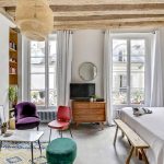 Ang mga nakabitin na dibdib ng mga drawer sa interior ay mukhang hindi karaniwan at naka-istilong