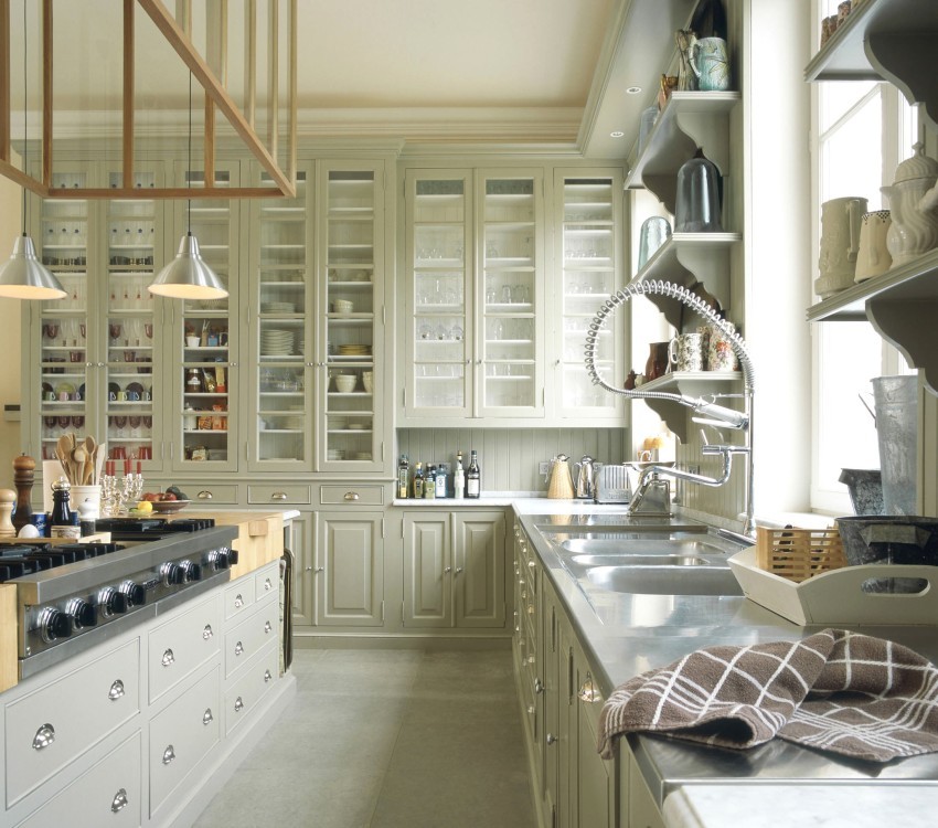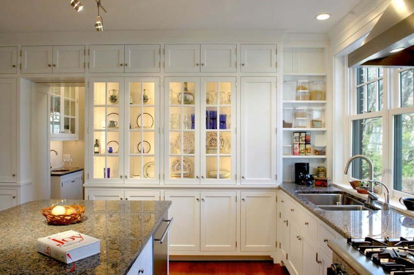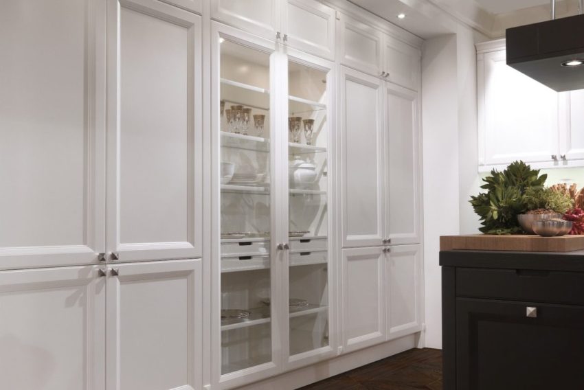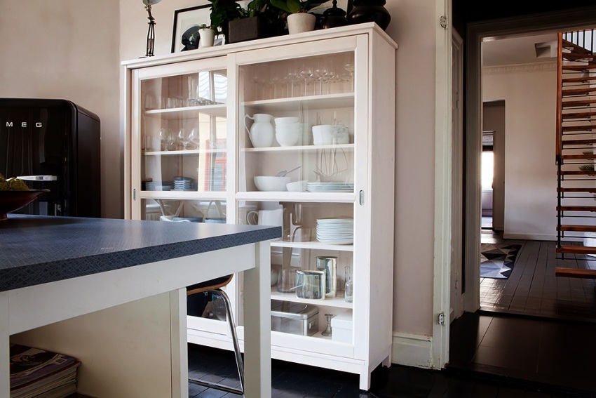 Pinapayagan ka ng mga kabinet na may pagsingit ng baso na mabilis mong mahanap ang nais na item at protektahan ang mga pinggan mula sa alikabok