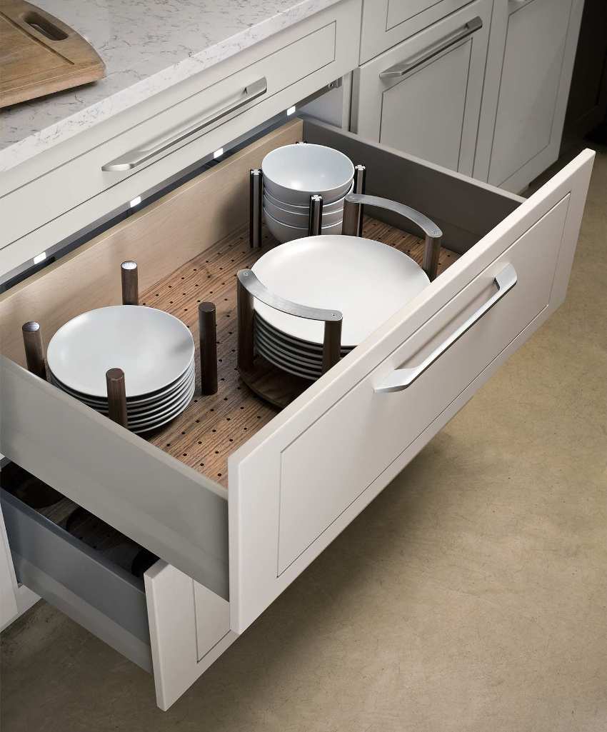Ang pag-iimbak sa mga saradong kabinet at drawer ay pinoprotektahan ang mga pinggan mula sa alikabok, splashes ng grasa at tubig