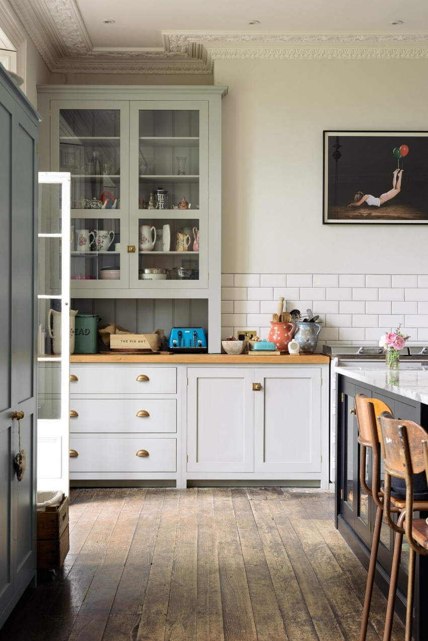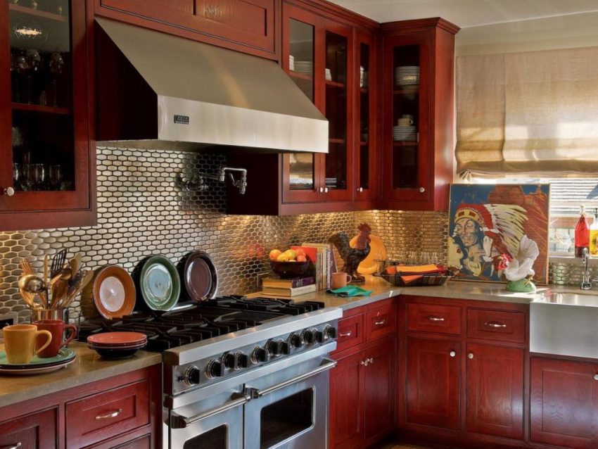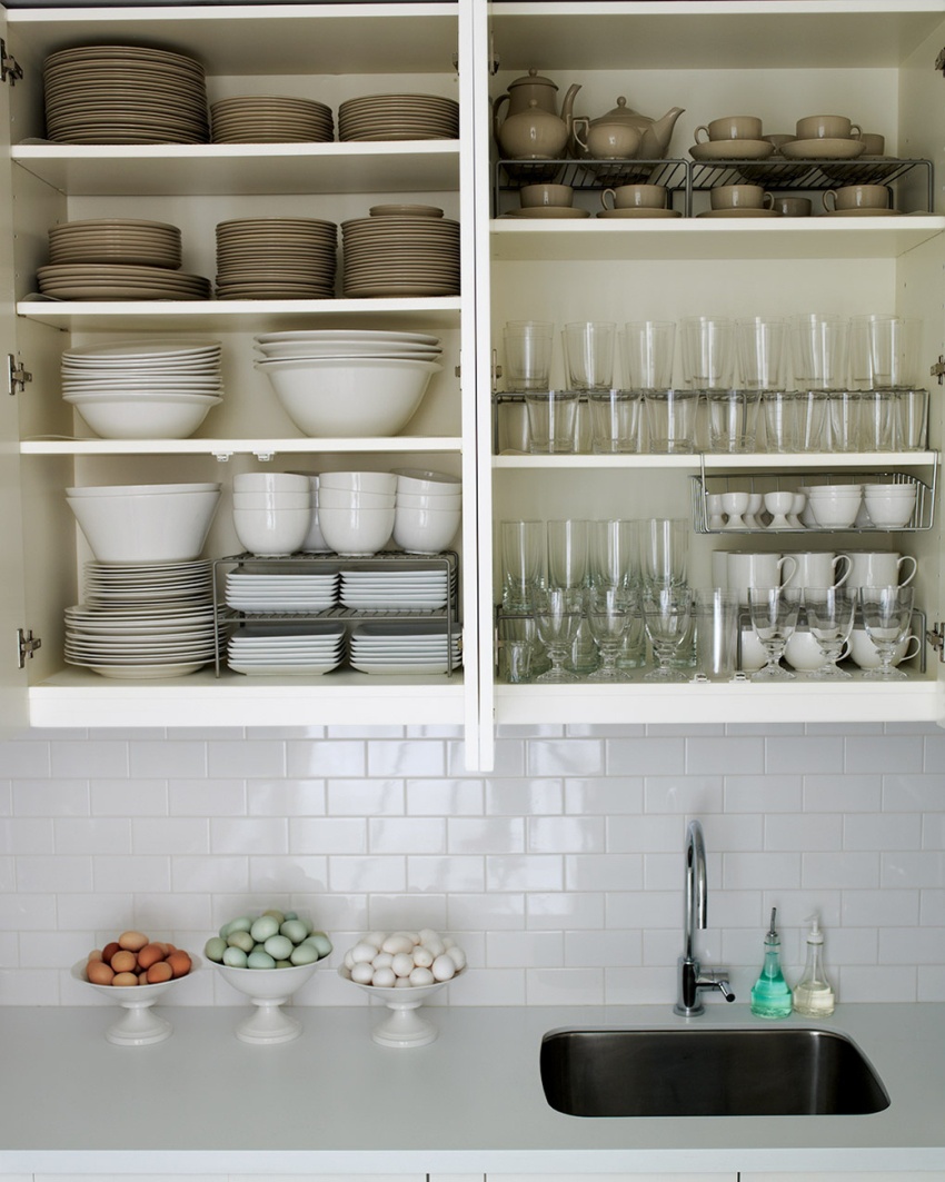 - ang pamamahagi ng mga pinggan sa mga espesyal na kabinet ng kusina ay itinuturing na pinaka perpektong pagpipilian, dahil malapit na ang lahat ng kailangan mo, at pinoprotektahan ng mga pintuan mula sa alikabok at dumi.