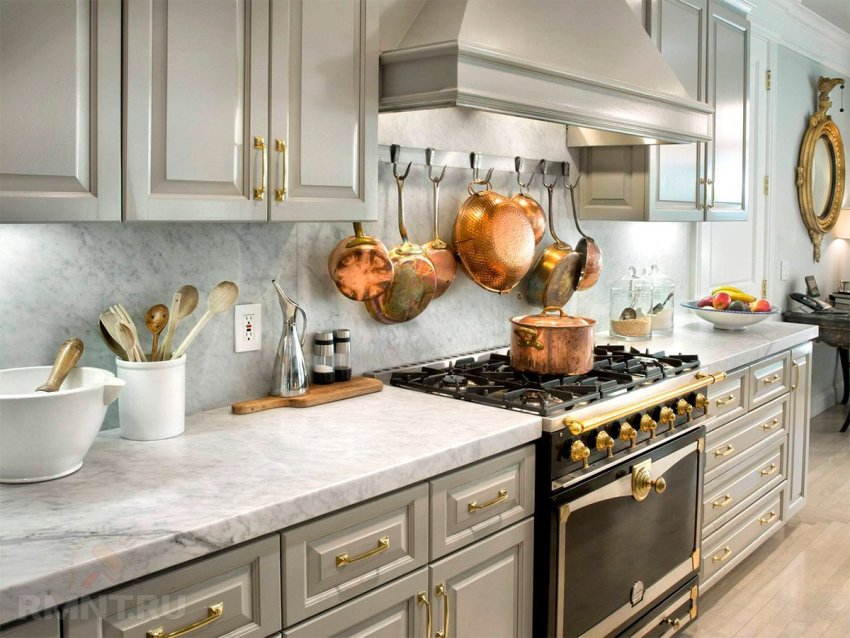 Nakatutulong na payo! Kapag pumipili ng isang gabinete sa kusina, kailangan mong umasa sa mga sukat ng silid at ang disenyo ng istilong ito. Para sa maliliit na silid, mas mahusay na pumili ng mga modelo sa mga ilaw na kulay na nag-aambag sa visual na pagpapalawak ng puwang.