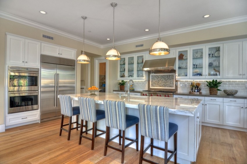 Bilang karagdagan sa nabanggit, dapat mong isaalang-alang ang aesthetic na bahagi ng disenyo ng kusina. Ang pag-install ng mga kabinet ay hindi dapat masira ang loob ng silid. Nakakagulat, bawat 10-15 cm ay mahalaga sa pag-aayos ng kusina. Kinakailangan hindi lamang upang maginhawang ilagay ang itaas na mga module, ngunit upang piliin din ang tamang taas ng mga kabinet ng kusina mula sa sahig.