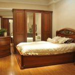 - emperyo at baroque. Ang mga nasabing pader ay nailalarawan sa pamamagitan ng malalaking sukat at isang solidong hitsura ng istraktura, samakatuwid inirerekumenda sila para sa pag-aayos ng isang malaking silid-tulugan. Ang isang tampok na katangian ay ang pagkakaroon ng mga gintong kabit;