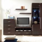Kung plano mong mag-install ng isang sulok ng dingding sa ilalim ng TV, pagkatapos ay kailangan mong ilagay ito upang ang TV ay matatagpuan sa tapat ng kama, sa isang minimum na anggulo, bilang isang resulta kung saan maginhawa upang panoorin ang mga programa nang hindi bumangon mula sa iyong kama. Ang pag-install ng isang pader na may TV ay maaari ring isaalang-alang sa isang makitid na silid-tulugan. Sa kasong ito, ang kagustuhan ay dapat ibigay sa isang mababaw ngunit malawak na istraktura.