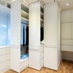 - Mga mini-pader. Naka-install sa maliit o makitid na silid-tulugan. Pangunahin silang binubuo ng isang mababaw na gabinete, isang seksyon para sa mga istante at drawer. Nakasalalay sa napiling disenyo, ang mga harapan ay maaaring buksan o sarado.
