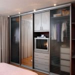 - ang posibilidad ng pag-install ng bukas na mga bisagra na istante, kung saan maaari kang mag-ayos ng iba't ibang mga pandekorasyon na elemento na nagbibigay-diin sa pagmamay-ari ng silid-tulugan sa napiling istilo, ayusin ang mga larawan ng pamilya. Kung gumagamit ka ng isang mahabang istante, kung gayon, bilang karagdagan sa TV, maaari kang maglagay ng mga libro o isang koleksyon ng mga souvenir dito.