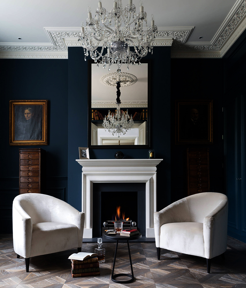 Dahil ang pangunahing elemento ng isang aristokratikong silid sa istilong Ingles ay isang fireplace, inilalagay ito gamit ang apog o marmol.