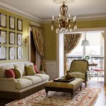 Ang pader ay madalas na nahahati sa mga lugar na gumagamit ng mga overhead na hulma, console, pilasters, platband at skirting board. Ang mga ito ay ipininta sa isang kulay kasama ang ibabaw. Maaari mo ring biswal na alisin ang puwang sa pamamagitan ng pagganap sa mga ito sa ibang paleta ng kulay. Ang iba't ibang mga pagpipilian sa disenyo ay ipinapakita sa larawan ng mga interior sa istilong klasikong Ingles.