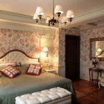 Ang silid-tulugan ay dapat magkaroon ng iba't ibang mga tela ng tela na may pagbuburda ng kamay at mga pattern ng openwork. Ang mga ito ay mga bedspread na may mga motif na bulaklak, mabibigat na mahabang lipon na mga kurtina na may mga kurtina at maraming mga unan na may iba't ibang laki. Ang natural na karpet na may isang maikling tumpok, na matatagpuan malapit sa kama, lumilikha ng isang espesyal na ginhawa.