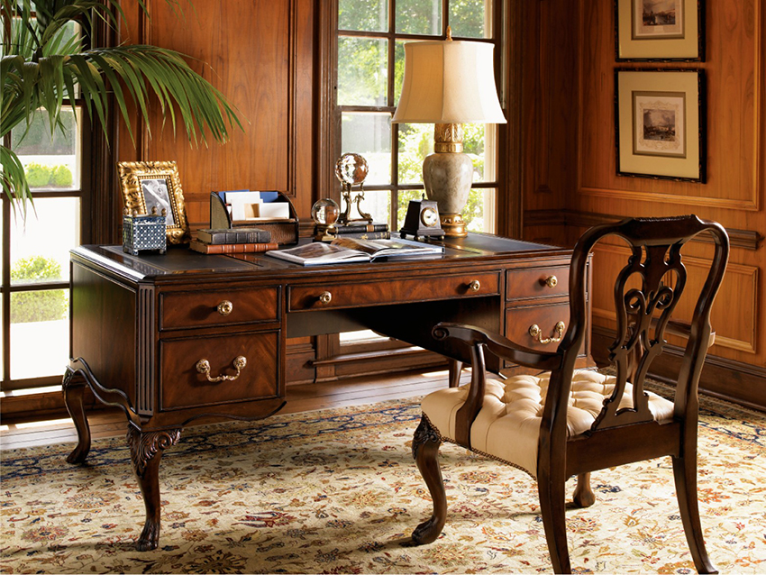 Para sa mga silid na may istilong Ingles, ginagamit ang de-kalidad na natural na kasangkapan sa kahoy