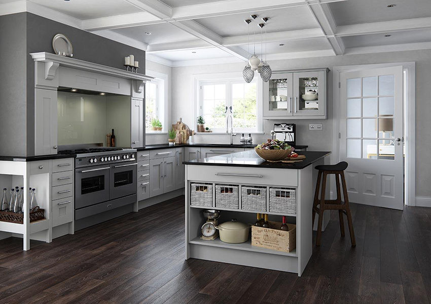 Karaniwan ng mga kusinang istilong Ingles ay ang pagkakaroon ng isang set ng kusina ng isla, pati na rin ang pagkakaroon ng mga kisame sa kisame at mga arko na pintuan.