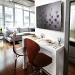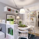 Mayroong iba pang mga diskarte na nagbibigay-daan sa iyo upang matukoy nang makatuwiran ang kapaligiran ng isang isang silid na apartment. Halimbawa, kung bihira kang kumain sa bahay, ngunit mas gusto mong kumain sa isang cafe o restawran, maaari kang bumili ng kaunti natitiklop na mesa... Papalaya nito ang isang makabuluhang lugar ng lugar at gagamitin ang istraktura kung kinakailangan.