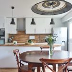 Maaari mong paghiwalayin ang lugar ng kusina gamit ang isang bar counter, hapag kainan, multi-level na kisame o plataporma
