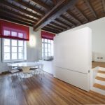 Kung ang iyong apartment ay may sapat na sapat na kisame, pagkatapos ay maaari mong ilagay ang lugar ng pagtulog sa itaas ng sahig. Ang halip na hindi pamantayang paglipat na ito ay makabuluhang makatipid ng magagamit na puwang, dahil maaaring mai-install ang isang aparador sa base ng kama. Gayunpaman, sa kasong ito, dapat tandaan na ang istraktura ay dapat magkaroon ng mataas na lakas.