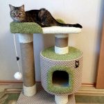 Ang pansin ay dapat ding bayaran sa paglikha ng isang gasgas na post, na inirerekumenda upang magbigay ng kasangkapan sa anumang uri ng istraktura. Una sa lahat, kailangan mong pumili para sa pagmamanupaktura ng isang matibay na materyal na makatiis ng maayos ng pananalakay ng mga hayop. Ang istraktura ay dapat na mai-install upang maabot ng alaga ang produkto mula sa anumang anggulo. Ang minimum na taas ng bahay para sa isang pusa na may isang gasgas na post, depende sa taas ng hayop, ay hindi dapat mas mababa sa 60 cm.