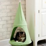 Kung titingnan mo ang mga larawan ng mga bahay para sa mga pusa, maaari mong bigyang pansin ang katotohanan na ang mga simpleng duyan, mga sofa, na naayos sa anumang maginhawang lugar at lumipat kung kinakailangan, ay napakapopular. Pangunahing nangyayari ang pangkabit salamat sa mga pindutan, Velcro, mga loop, kurbatang o carabiner na humahawak sa istraktura mula sa apat na sulok. Sa kasong ito, ang produkto ay maaaring gawin sa dalawang bersyon: