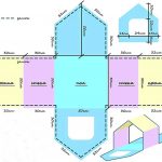 - Upang makumpleto ang bubong, ang mga triangles ay iginuhit at gupitin sa dalawang maliliit na sinturon ng itaas na kahon, na matatagpuan sa tapat ng bawat isa, at upang ang natitirang mga bahagi ay maaaring baluktot pasulong at bumuo ng isang bubong.