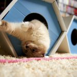 - Palaruan. Kung gagamitin mo ang istraktura ng isang gasgas na post, laso, tunnel o iba pang mga aksesorya ng pag-play, hindi hihiga ang alaga, ngunit magsusumikap para sa patuloy na paggalaw.
