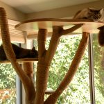 Ang isang tunay na aliwan para sa isa o maraming mga alagang hayop ay magiging isang multi-tiered na laro kumplikado, kung saan ang mga pusa ay may pagkakataon na matulog at maglaro. Ang nasabing isang sagisag ay nangangailangan ng pag-install ng maraming mga platform sa racks, ipinakita sa anyo ng mga gasgas na post, sa pagitan ng mga duyan, hagdan ng lubid o iba pang mga aparato ay hinila. Nararapat na palamutihan ang mga sahig na may mga laruang nakabitin sa mga kuwerdas.