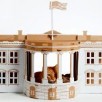 Mayroon ding mas detalyadong mga pagpipilian para sa paglikha ng mga bahay ng karton, halimbawa, isang dalawang palapag na gusali para sa maraming mga hayop. Ngunit sa kasong ito, kakailanganin ng kaunti pang oras upang gugulin, dahil kailangan mong maghanda ng mga template para sa paggawa ng mga pagbubukas ng pinto at bintana. Upang makagawa ng gayong mga bahay para sa mga pusa mula sa mga kahon gamit ang iyong sariling mga kamay, kakailanganin mo ng dalawang magkatulad na lalagyan, ang mga sukat na kung saan ay depende sa mga sukat ng pinakamalaking hayop. Ang isang pinuno, lapis, kutsilyo at mainit na pandikit ay magagamit din.